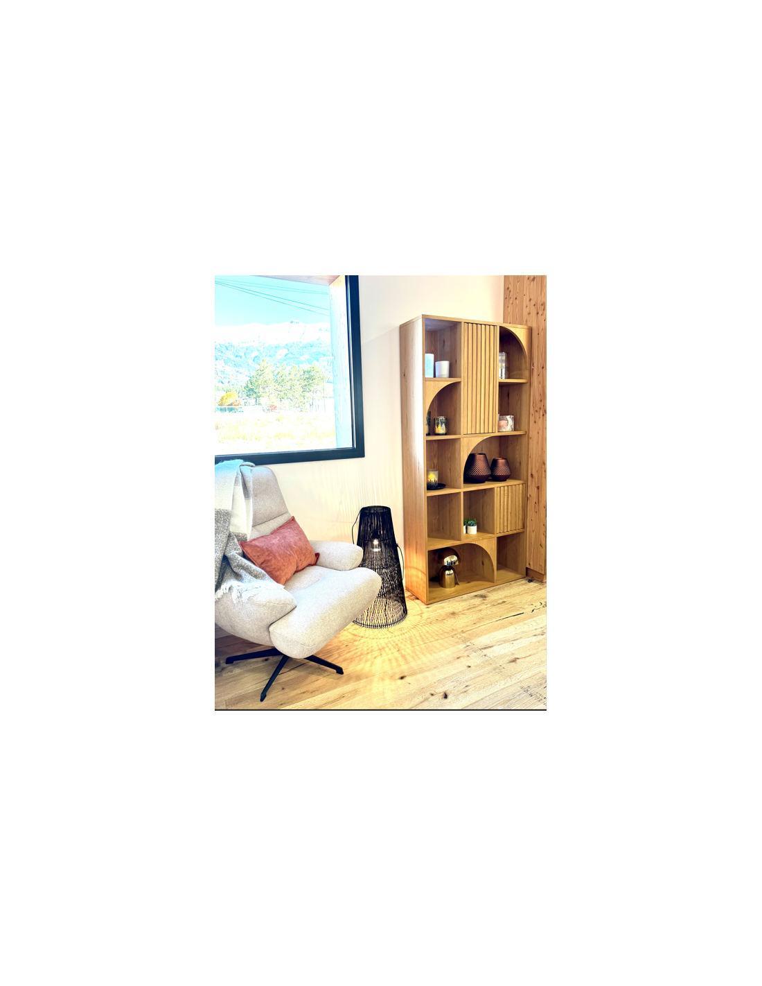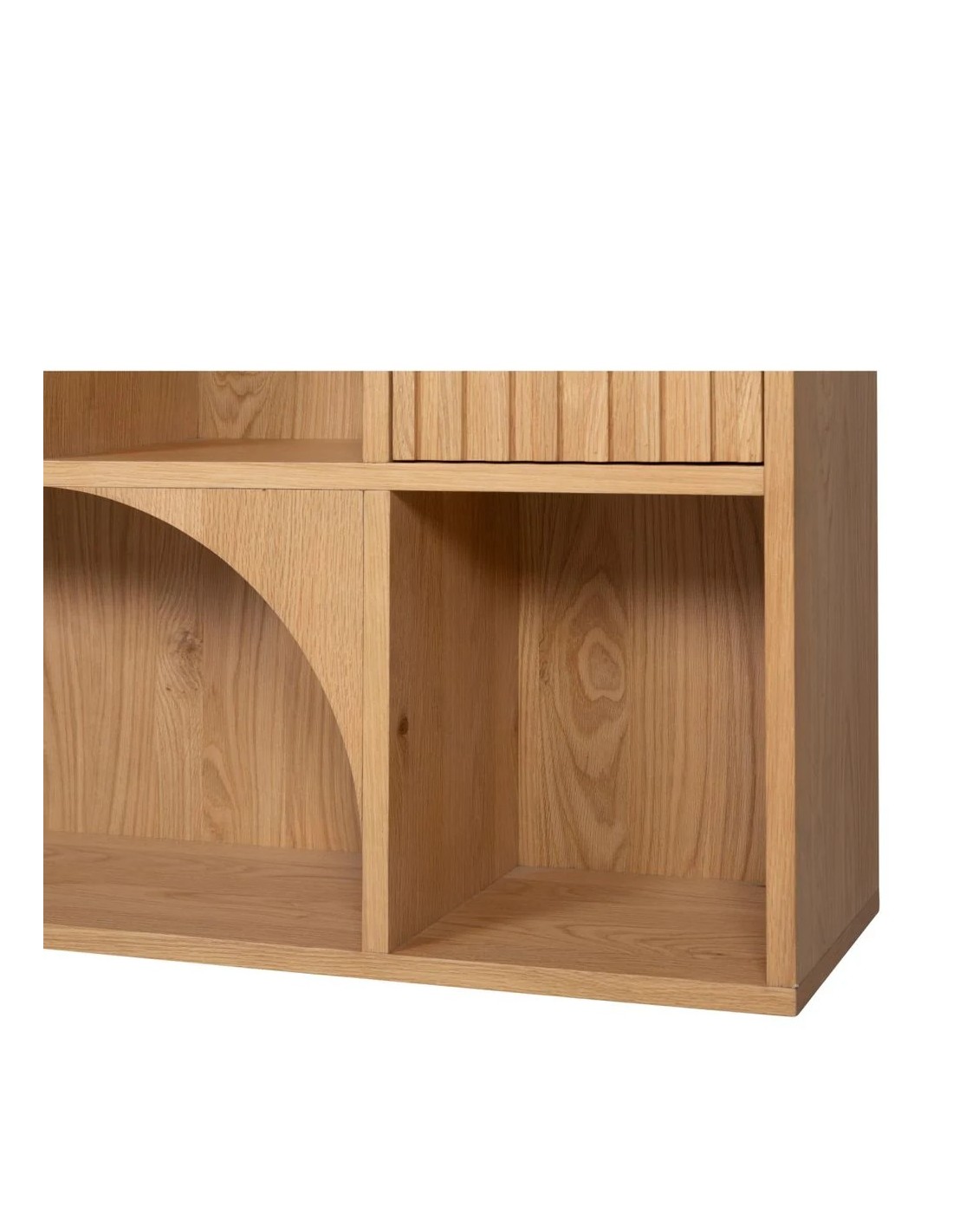 Alliez style et praticité avec cette bibliothèque en chêne au design épuré. Composée de 10 niches ouvertes pour exposer vos objets déco et de 2 portes pour un rangement discret, elle s'intègre parfaitement dans un salon, un bureau ou une chambre. Son look naturel et chaleureux en fait une pièce aussi fonctionnelle que tendance.