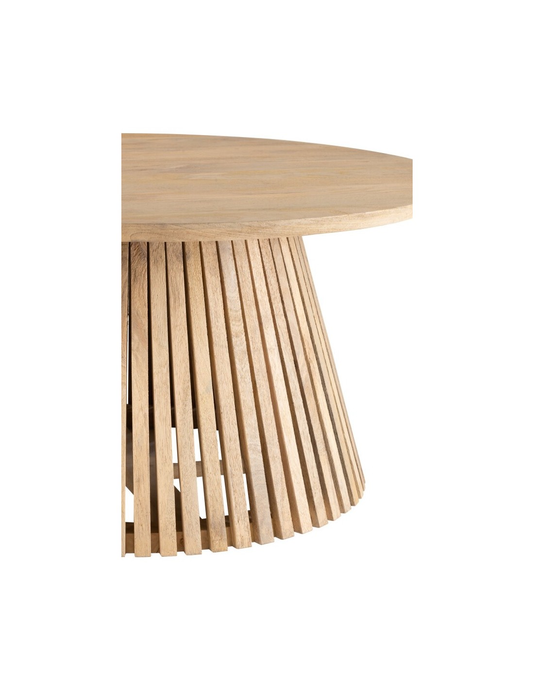La table Basse "Vincent" en bois de manguier naturel, est une pièce de mobilier à la fois élégante et fonctionnelle, idéale pour ajouter une touche de chaleur et de caractère à votre intérieur. Un design rustique et naturel, parfait pour les intérieurs qui cherchent à allier modernité et charme traditionnel. Une très jolie table basse ronde en Manguier de couleur naturel. Une pièce ultra tendance, avec un esprit Japandi, assez sobre, et qui s'adaptera parfaitement à votre intérieur. Vous pourrez en profitez pleinement et la décorer à vos envie. Elle donnera un aspect épurée grâce à son jolie pied en Manguier.