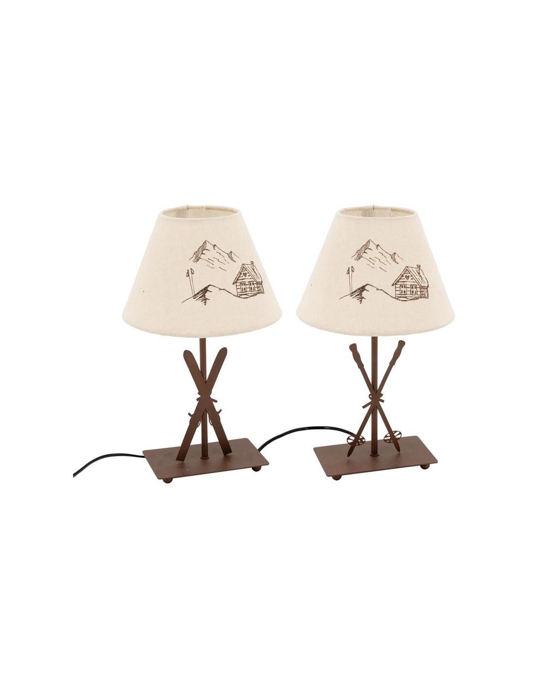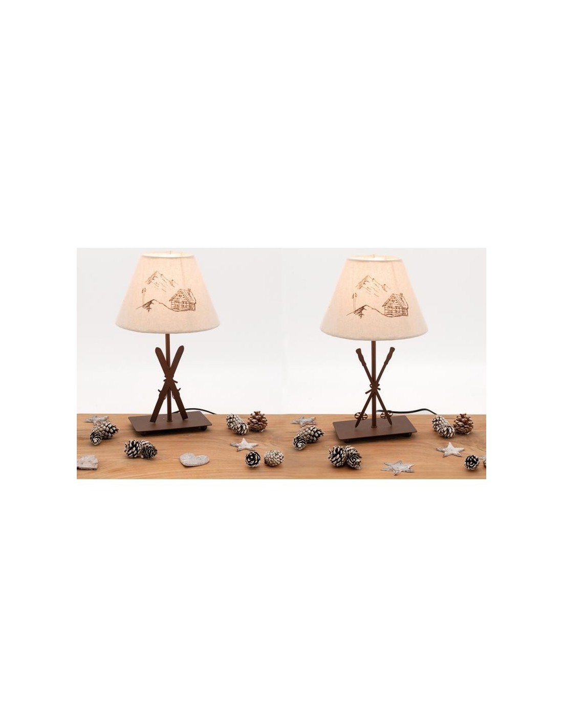 Lampes en métal avec pied décor skis, 2 motifs assortis.