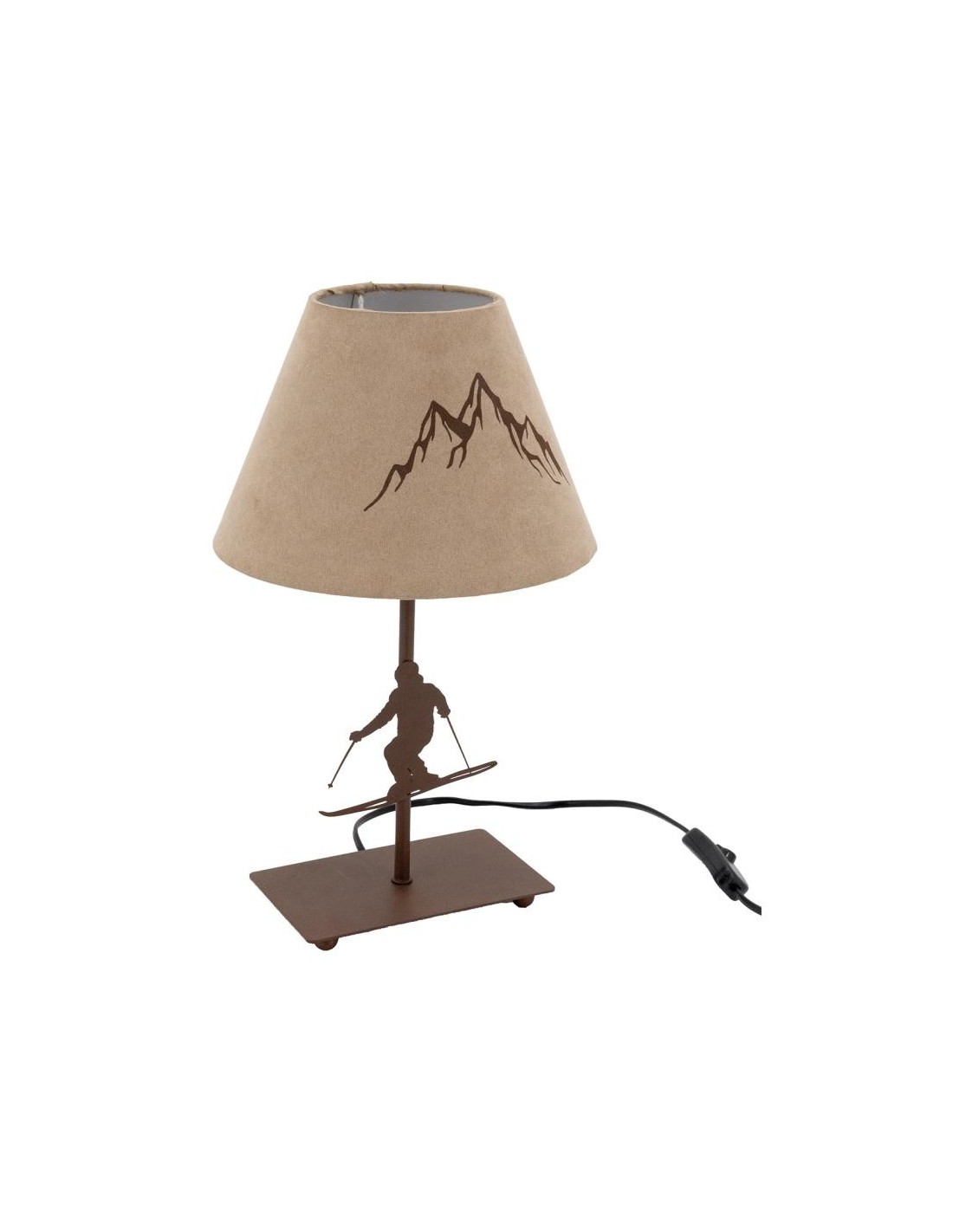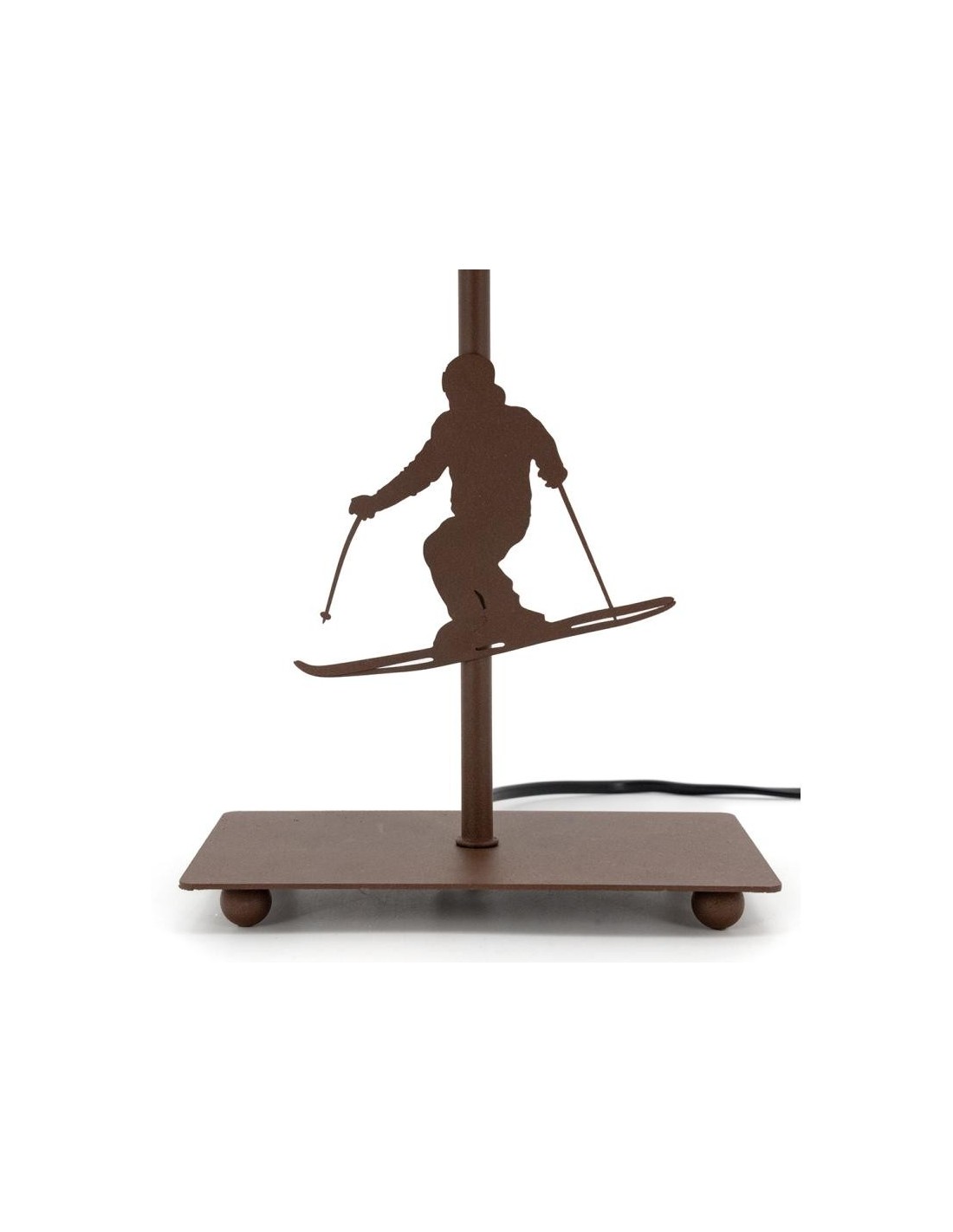 Lampe en métal marron avec pied décor skieur.