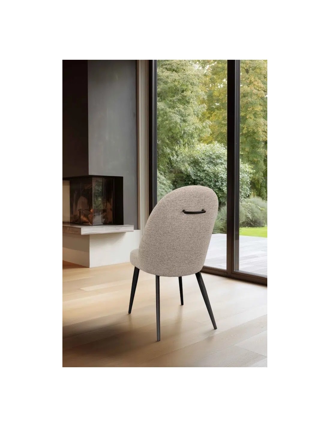 Son piètement en fer époxy, fin et solide, lui confère une allure aérienne tout en garantissant une vraie stabilité. Grâce à son assise souple et son dossier haut, Élina devient une chaise en tissu idéale pour les repas prolongés ou les moments conviviaux. Elle trouve naturellement sa place dans une ambiance de meubles modernes, qu’elle accompagne d’une présence raffinée et discrète.