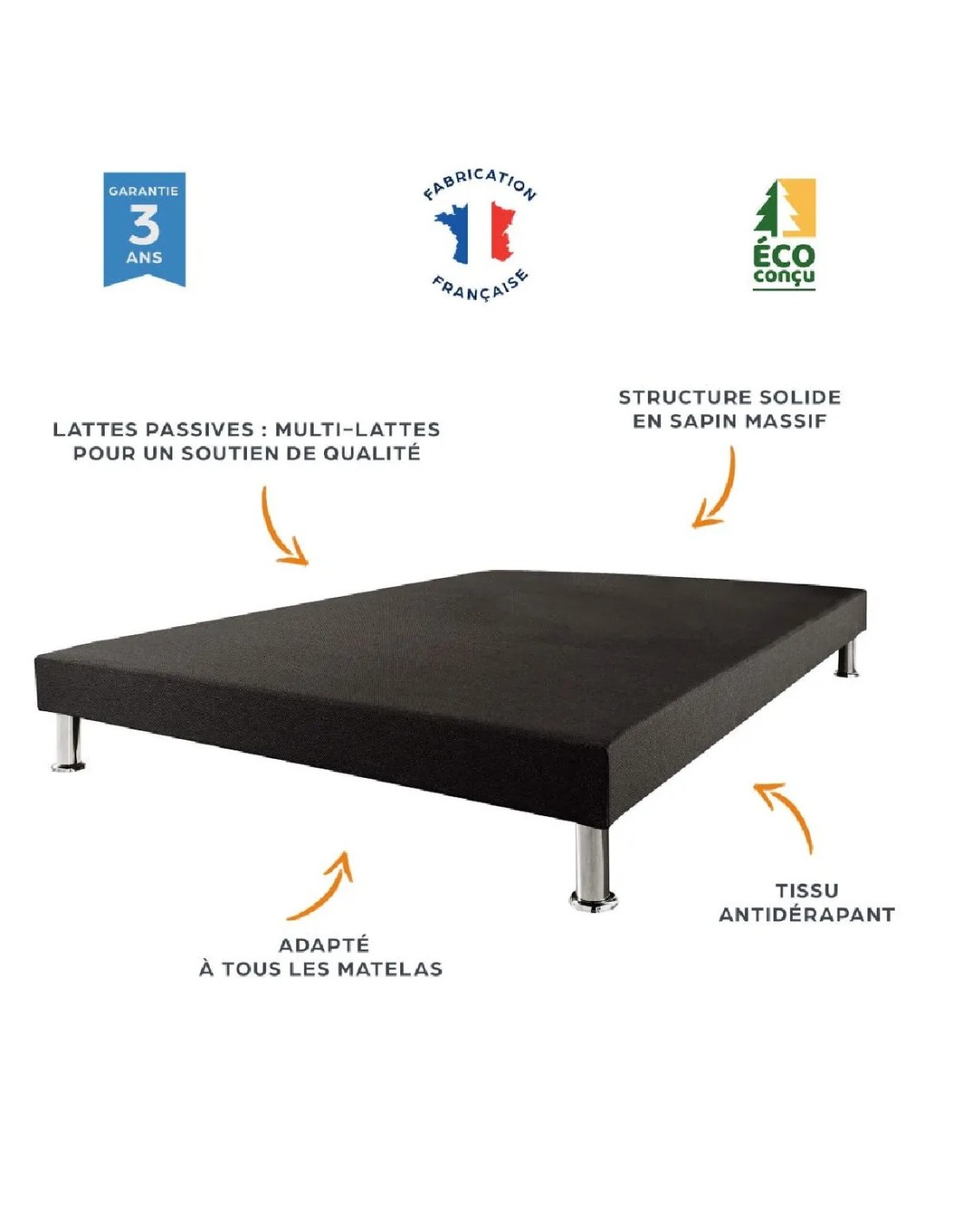 Sommier tapissier - Gris anthracite - 90/200 cm