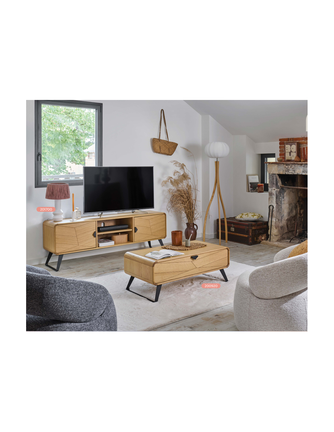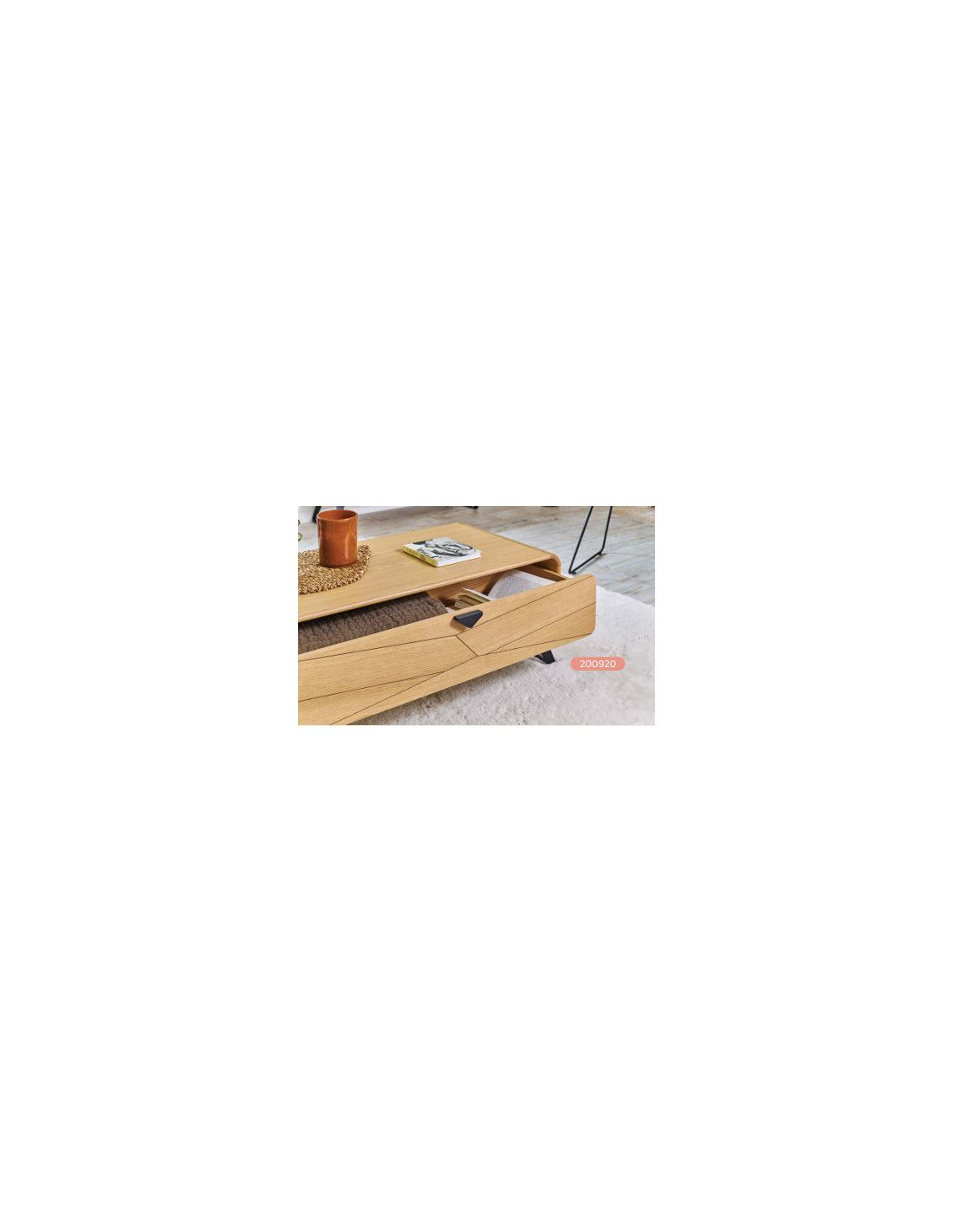 La table de salon Tokyo s’impose par son allure contemporaine et son élégance naturelle. Son décor façon chevron, subtilement travaillé sur le tiroir, apporte une identité forte et s’accorde parfaitement avec un intérieur de mobilier contemporain. Le placage chêne, présent sur le dessus et les côtés, donne à l’ensemble une chaleur authentique qui se marie aisément avec un fauteuil de salon ou un meuble buffet aux teintes douces.