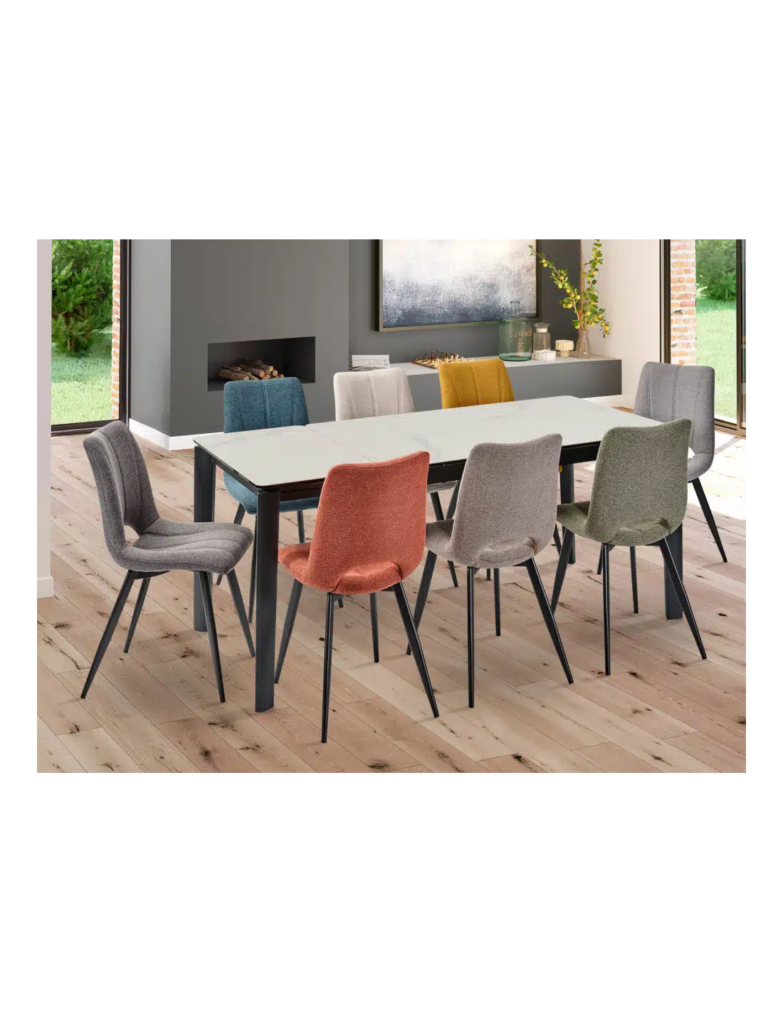 Table céramique HUGO blanc marbré, 1 allonge