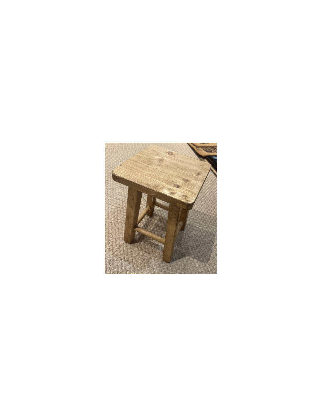 Tabouret carré bois ciré massif